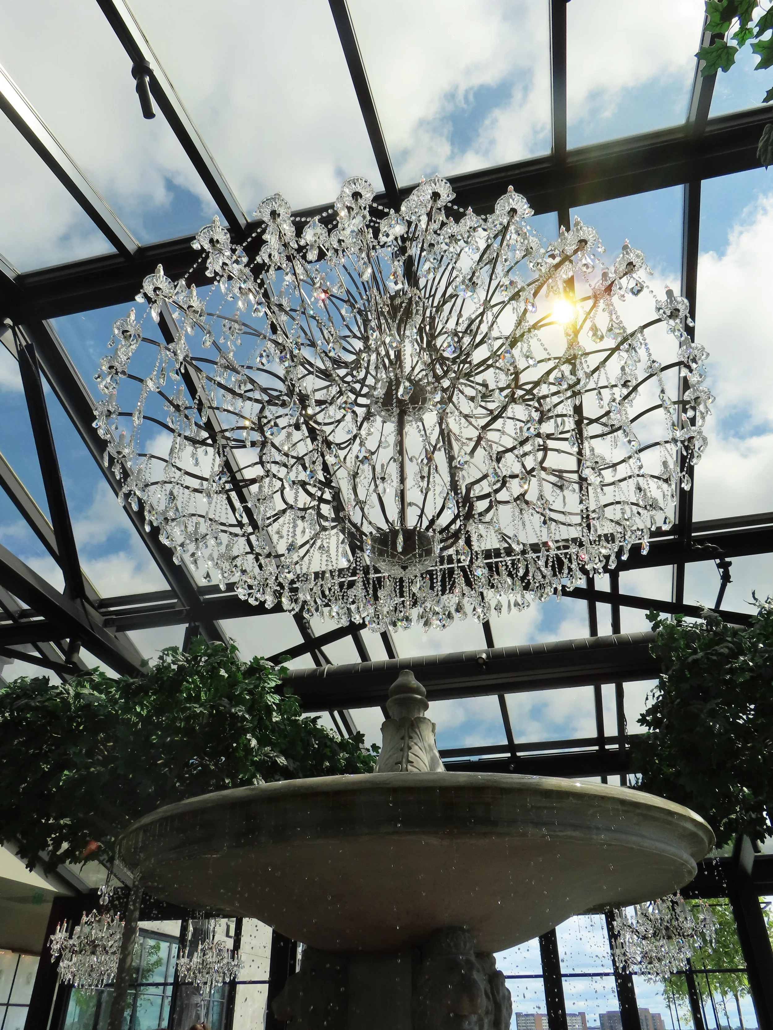 The view from our table, seated next to the center fountain and chandelier.